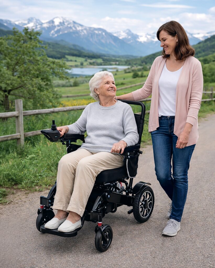 Unser kompakter, faltbarer Elektrorollstuhl EMIL ermöglicht