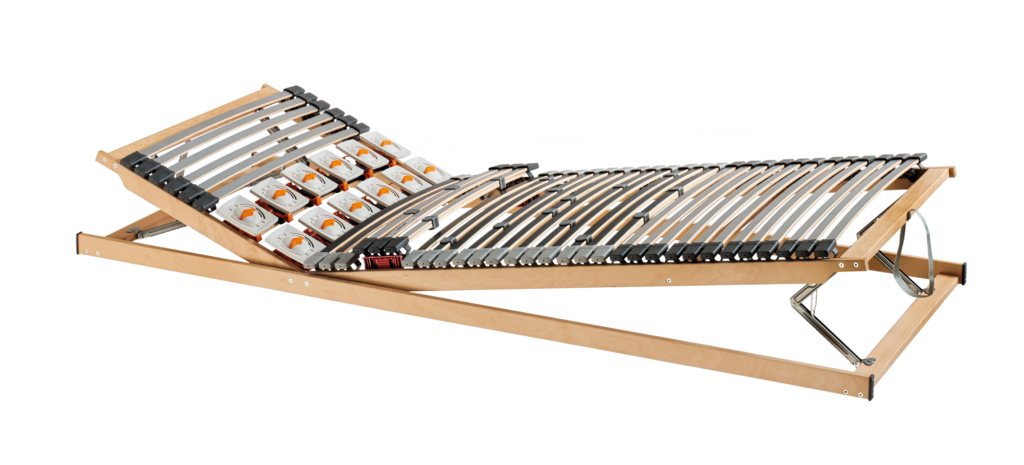 Beide Lattenroste entlasten die Schulterzone durch eine weichere, einsinksame Schulterkomfortzone. Der Schulterfreund ist unser bewährtes Einstiegsmodell mit stufenloser Härtegrad-Einstellung. Der Schulterfreund Plus bietet zusätzlich eine vollständige 5-Zonen-Unterfederung, eine integrierte Lendenstütze und noch feinere individuelle Einstellmöglichkeiten – ideal, wenn Sie neben Schulterproblemen auch Rückenschmerzen haben.